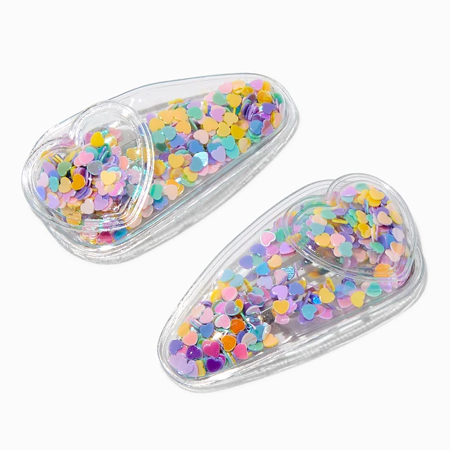 Claire's Club Pastel Heart Confetti Shaker Snap Hair Clips - 2 Pack