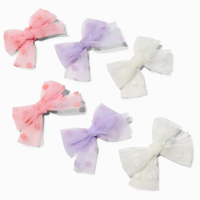 Claire's Club Pastel Polka Dot Mesh Hair Bow Clips - 6 Pack