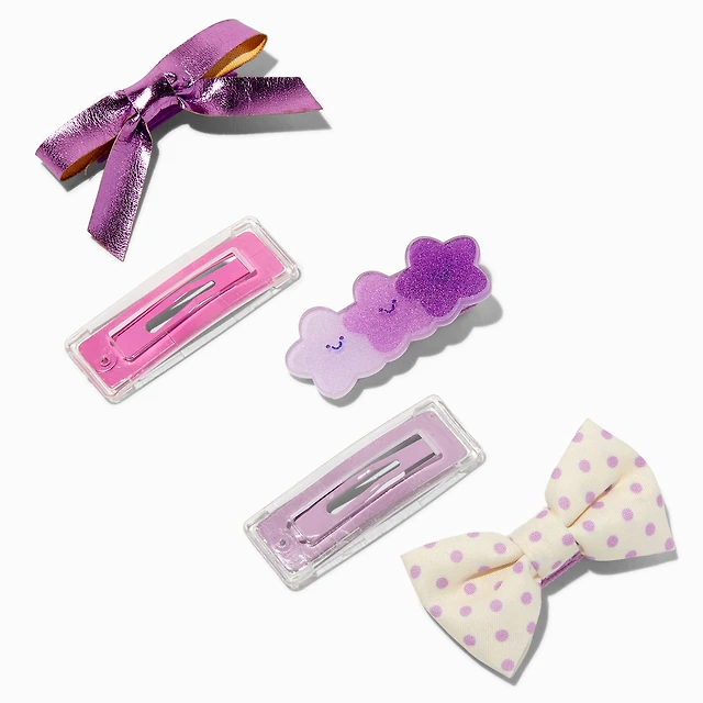 Claire's Club Purple Bow Mixed Hair Clips - 5 Pack