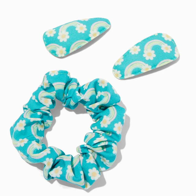 Claire's Club Teal Rainbow Scrunchie & Hair Clip Set - 3 Pack