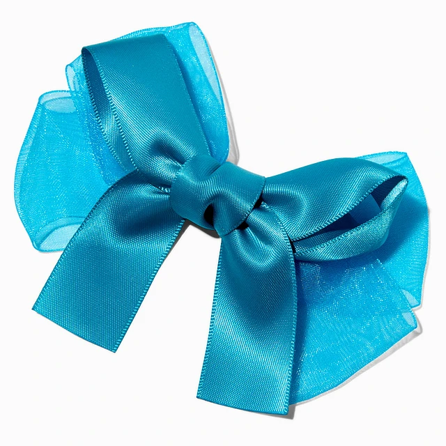 Claire's Club Teal Satin Chiffon Hair Bow Clip