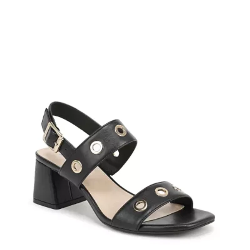 Bring chic polish and modern flair to your look with these women's block heel sandals—designed to move elegantly from the office to after-hours events. Dual wide straps in faux leather, open square toe, and cutout grommet detailing deliver a bold finishing touch to these heeled sandals, while an adjustable ankle strap with a sleek metal buckle ensures a personalized, secure fit. Trusted Soft System® comfort technology for unmatched cushion, support, and flexibility in every pair. Enhanced flexibility with an ultra-flexible, padded platform heel for easy movement. Traction sole for extra stability. Just-Right Height 2 1/8 inch block heel. Buckle closure Vietnam Imported Product Specifications 2.125 in. 0.125 W Material polyurethane