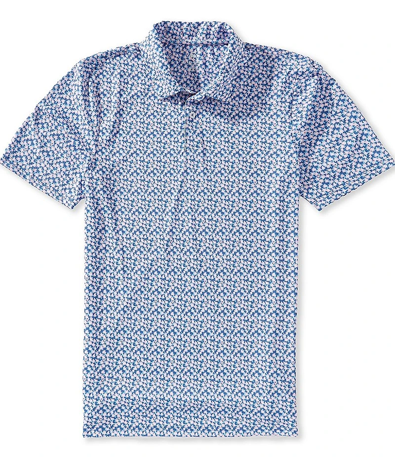 From Class Club, this polo shirt features: Floral print Polo collar Short sleeves 2-button placket Pullover construction Wrinkle resistant Fade resistant/color retention Moisture wicking Polyester/spandex Machine wash/tumble dry Imported.