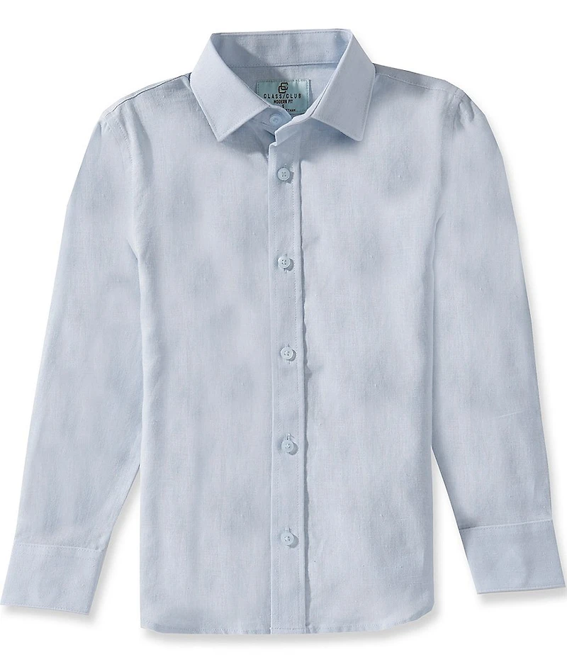 Class Club Little Boys Solid Linen Long Sleeve Button Down Shirt