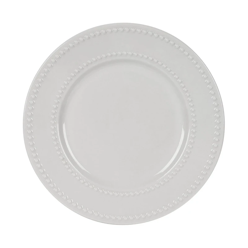 Crafted from high-quality materials, the plate boasts a durable design that is both microwave and dishwasher safe, offering convenience and longevity. The plate features a charming beaded edge that adds a touch of sophistication and detail to its classic white finish. The subtle embellishment around the rim gives the plate texture and character, making it a versatile choice for both casual and formal dining settings.