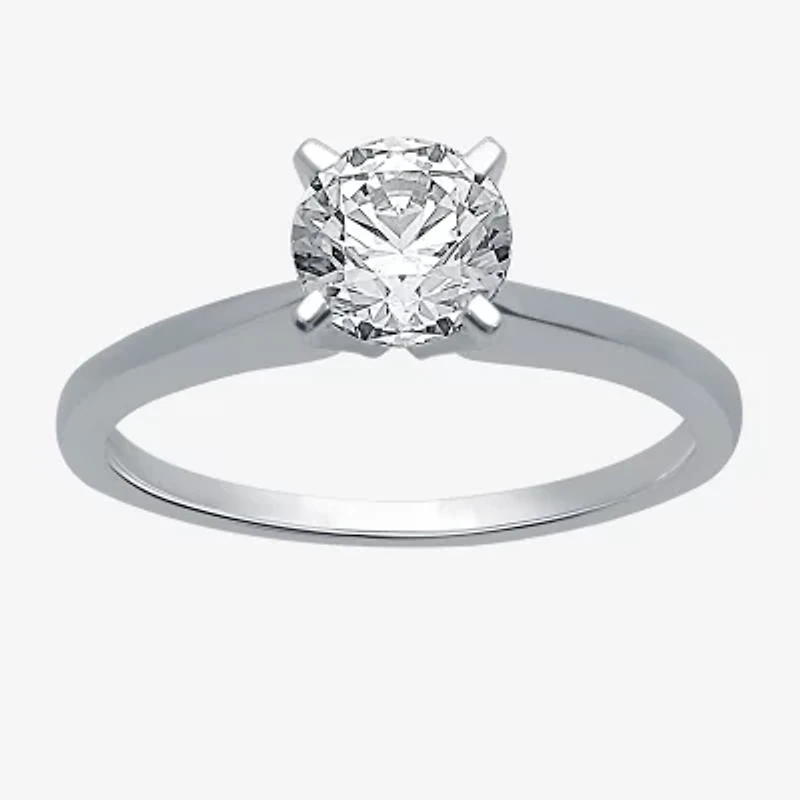 This women's solitaire engagement ring is simple yet show-stopping. It features a 1 carat round-cut natural diamond in a 10K Gold prong setting.