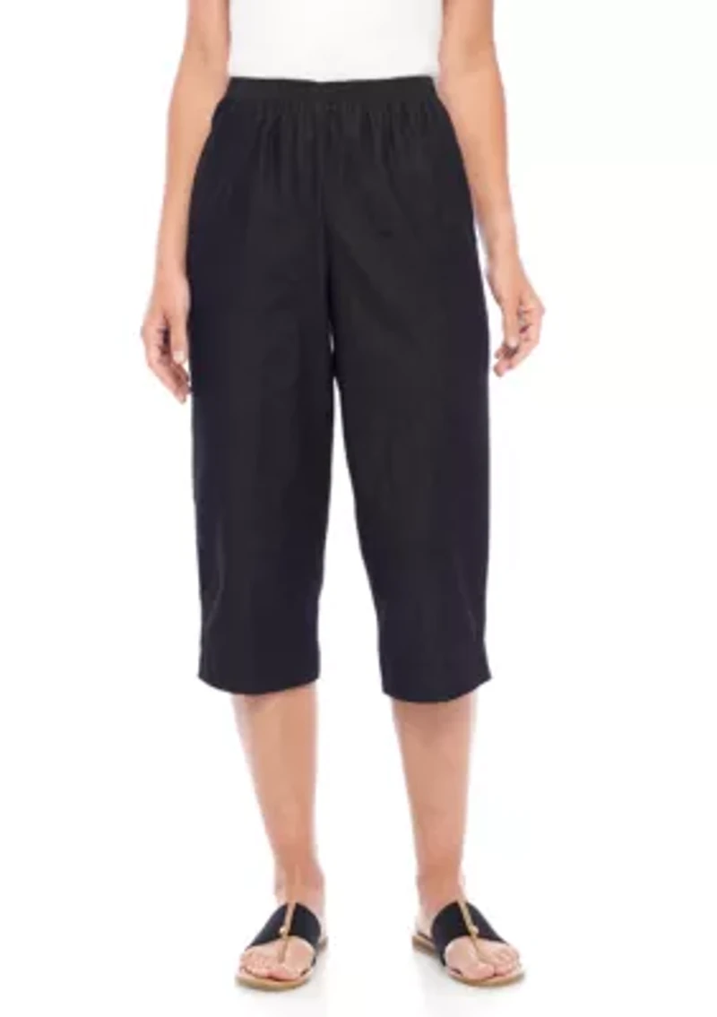 This classic denim capri is an essential part for your wardrobe. Look and feel great in this comfortable pull-on pair with an elastic waist! 20-in. inseam Elastic waistband Loose fit Imported Material & Care Cotton, polyester, spandex Machine washable
