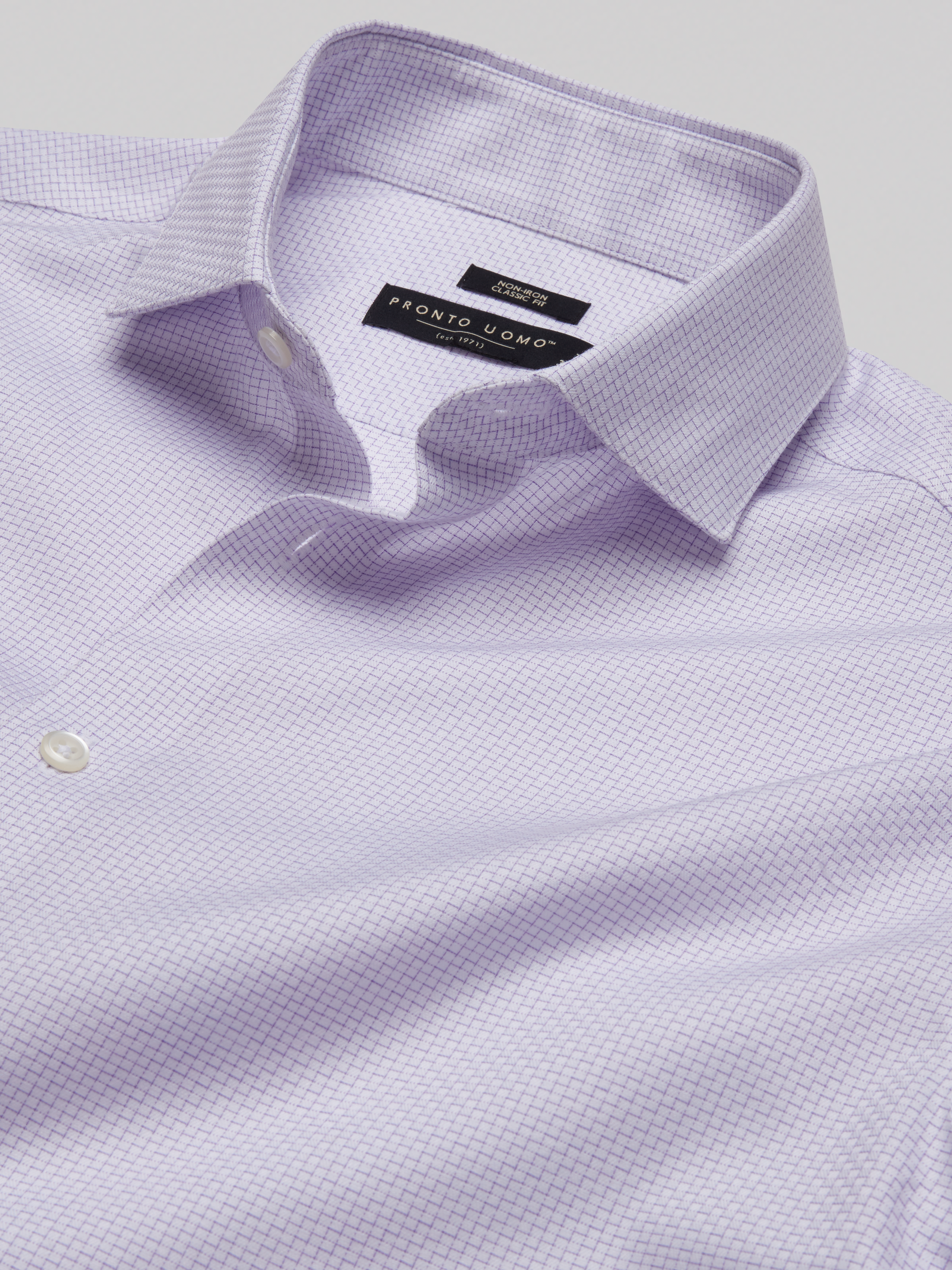 This Classic Fit dress shirt with a touch of stretch features a refined mini grid pattern, offering both comfort and style. The cotton-blend fabric is soft and breathable, while the added stretch provides ease of movement throughout the day. Perfect for the office or a smart-casual event, it combines a timeless look with modern functionality.