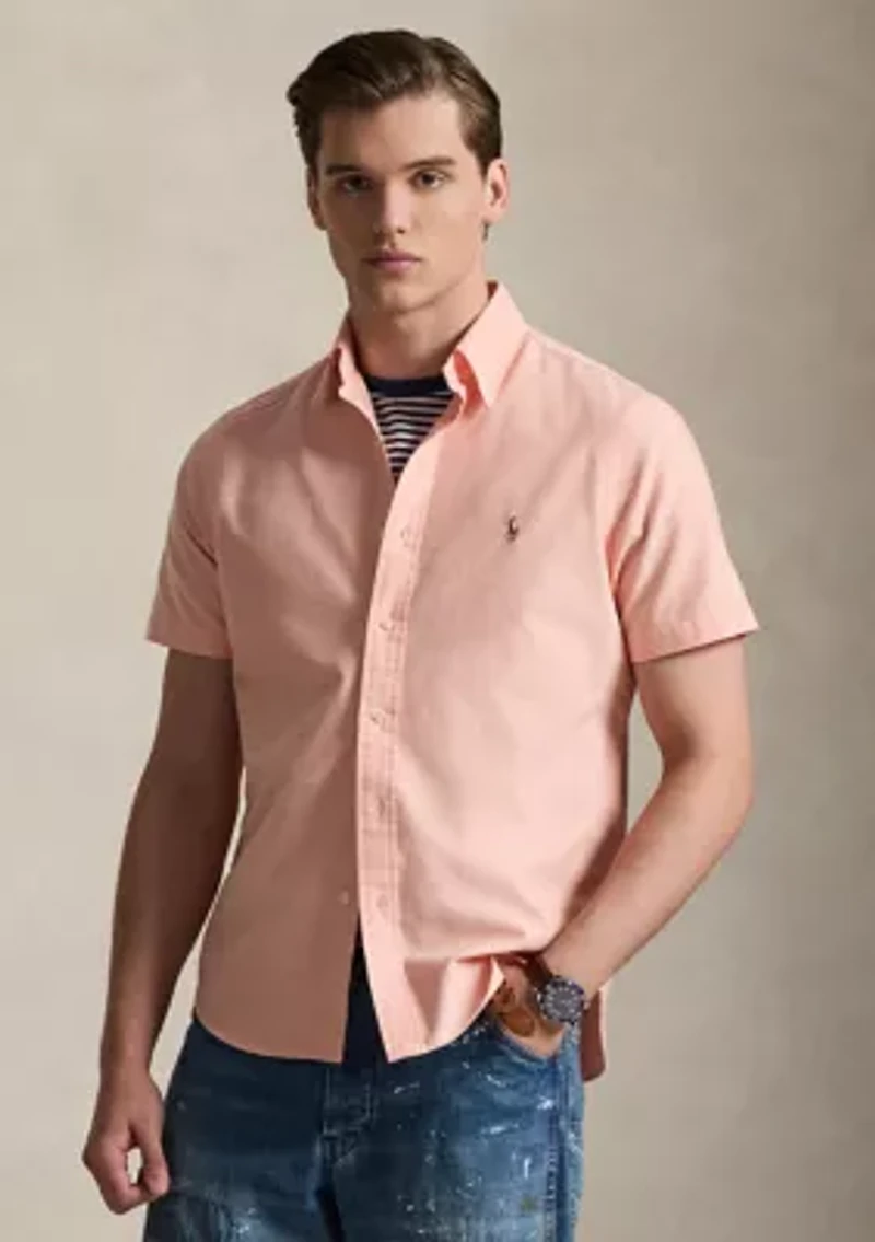 The Oxford shirt made its debut very early on in Ralph Lauren’s designs, and since then, it has solidified its status as a pillar of the Polo look. The fabric is developed with a secret wash that gives it instant character, ease and a heathered softness—what Polo Ralph Lauren calls the perfect “rumple.” The formula is so unique, it’s been kept in a safe for more than three decades. Today, Mr. Lauren continues to create countless variations of his iconic shirt, including this short-sleeve version that is finished with a multicolored iteration of Ralph Lauren’s signature embroidered Pony. Multicolored signature embroidered Pony at the left chest Button closure Point collar Short sleeves Split back yoke with a box pleat ensures a comfortable fit and a greater range of motion Imported Material & Care 100% cotton Machine washable