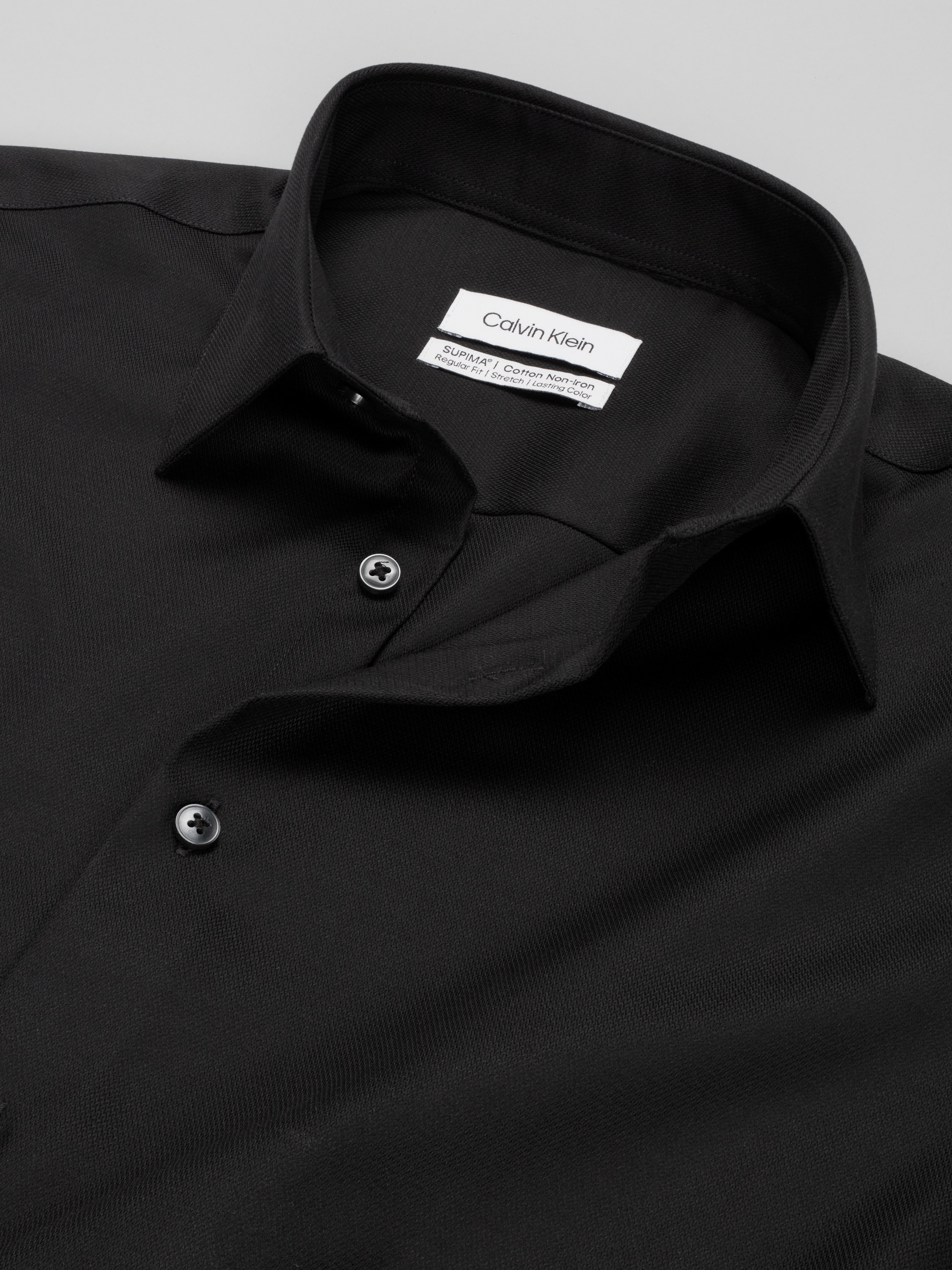 Say hello to your new favorite shirt. With its crisp point collar and buttery-soft stretch fabric, this Calvin Klein Classic Fit dress shirt is all about easy charm and everyday polish. The color stays bold, the wrinkles stay gone (thanks, non-iron magic!), and you stay effortlessly stylish from morning coffee to evening plans. It's not just a shirt, it's a smooth operator in your closet.