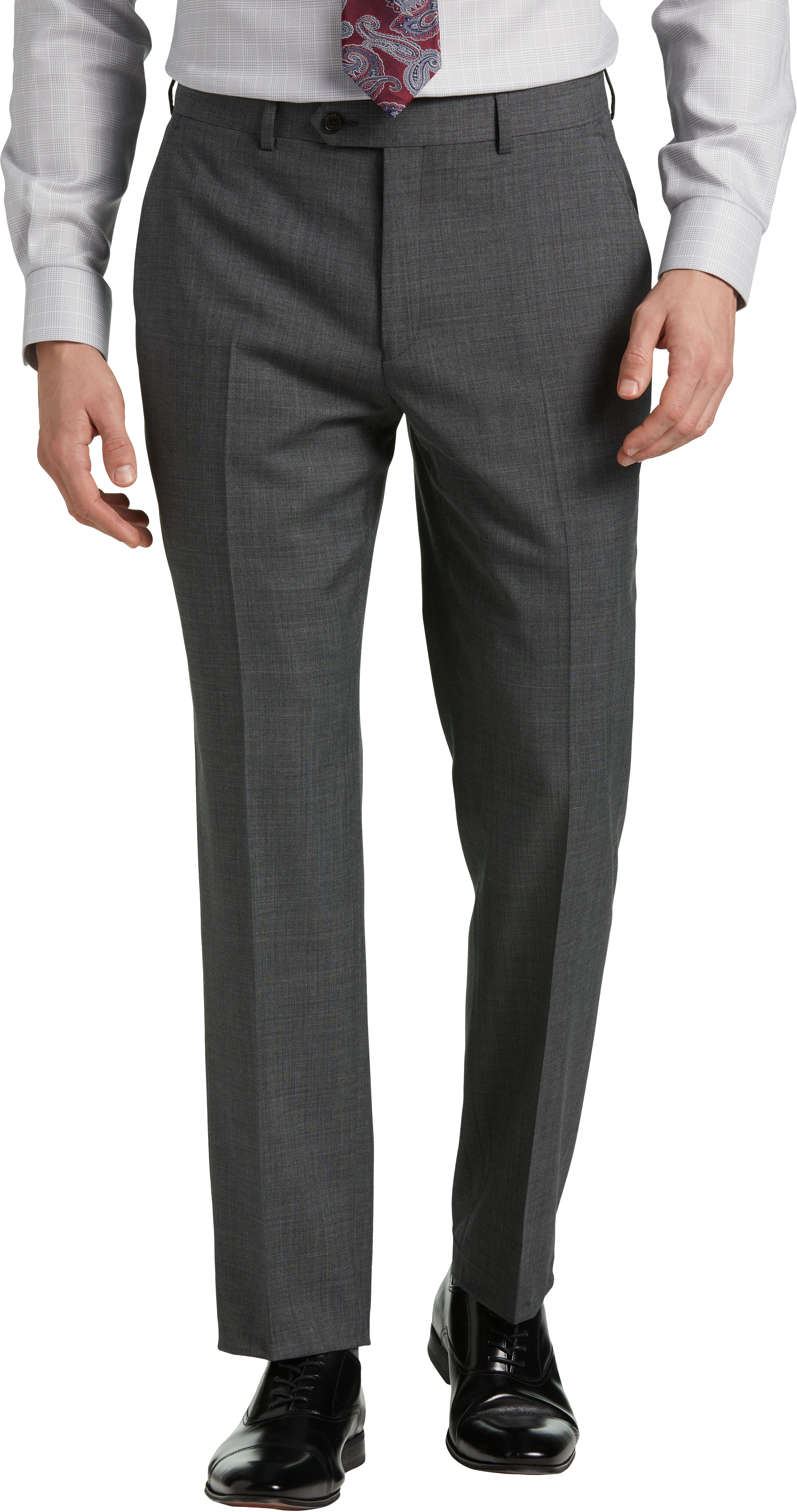- Flat Front, Pre-Hemmed, Classic Fit