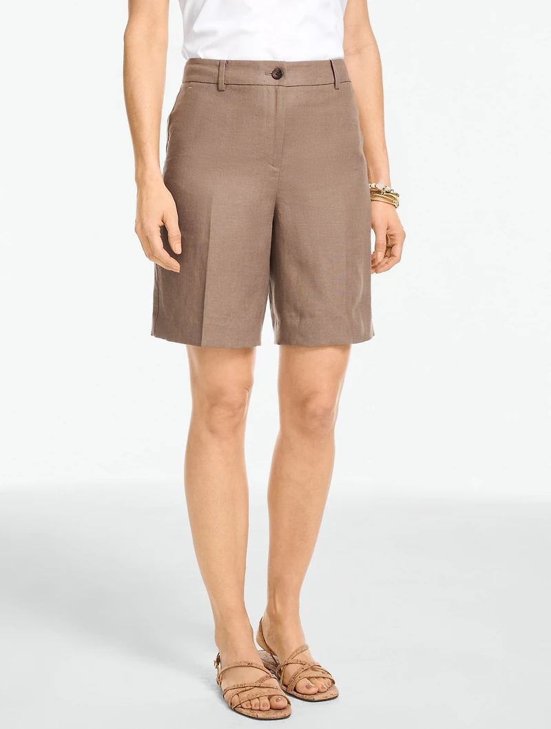 Chic and timeless. Refresh your wardrobe this season with our polished high waist shorts. Crafted from breathable linen with slash front pockets and welt pockets at the back. Perfectly tailored for effortless summer style.