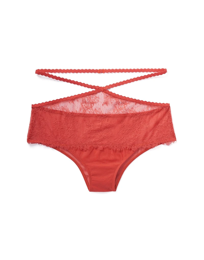 The Claudette Cheeky Dark Orange lace Cheeky is a bold-fashion statement in vibrant lace. Effortlessly flirty, this style is unlined for a barely-there feel and features Style: Cheeky Panty for a flirty finish. (Available in sizes XS-XL.)