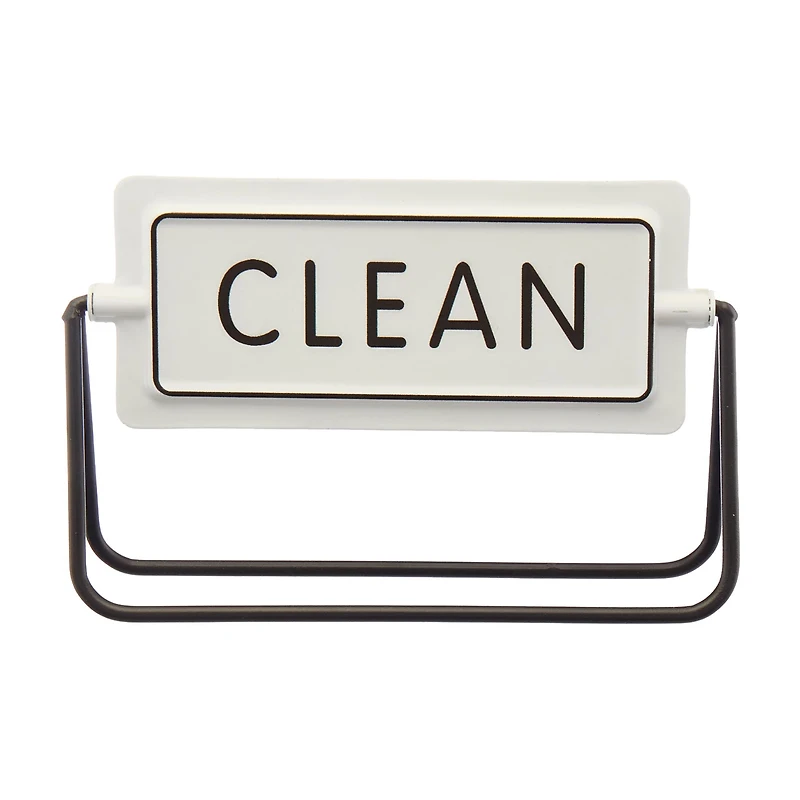 Crafted from durable materials, this flip sign features a sleek, minimalist design with a sturdy black metal frame. The sign itself is a crisp white with bold black lettering, ensuring maximum visibility and readability. One side of the sign reads "CLEAN" and the other side reads "DIRTY," allowing you to flip it easily to indicate the current state.