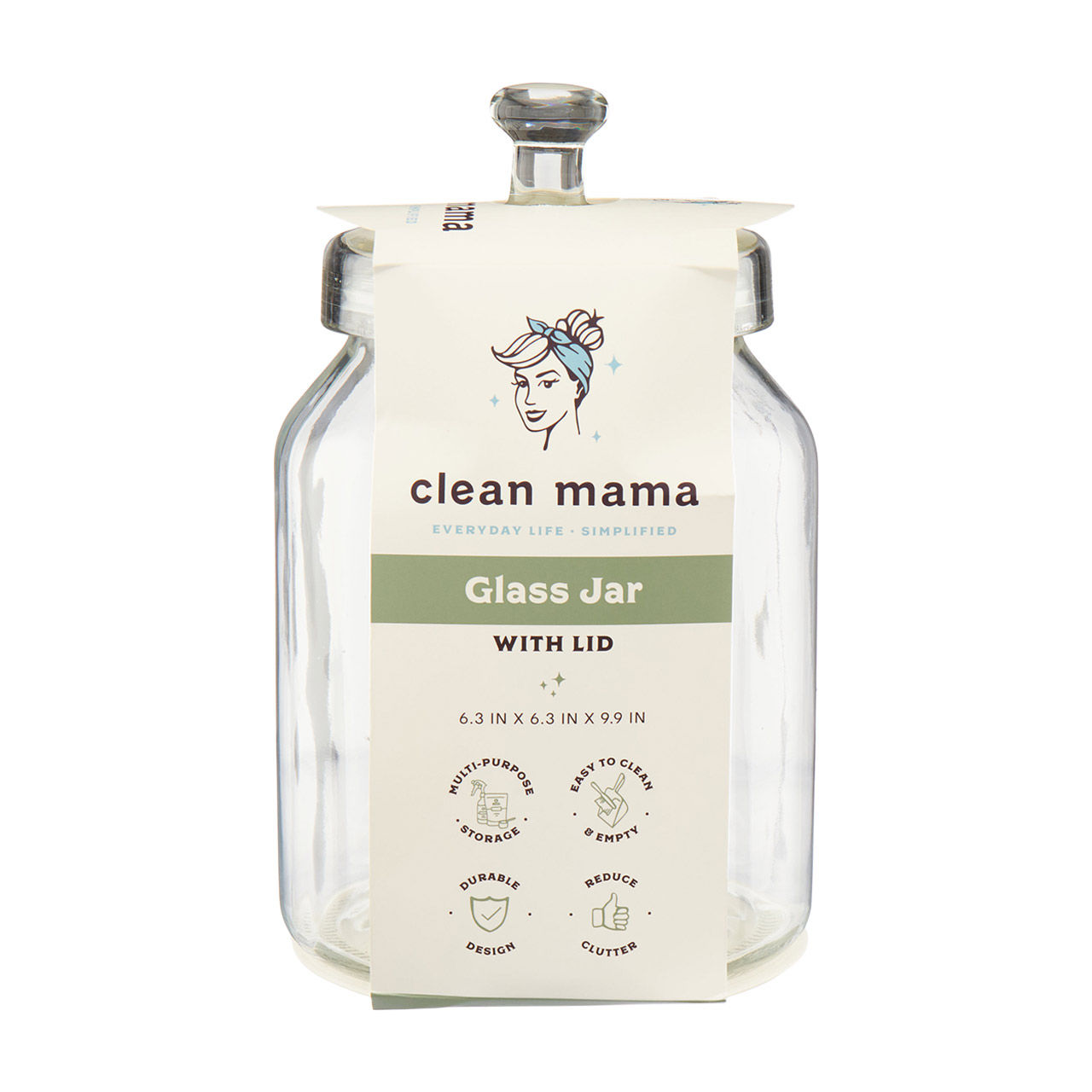 Clean Mama Clear Glass Storage Jar with Lid