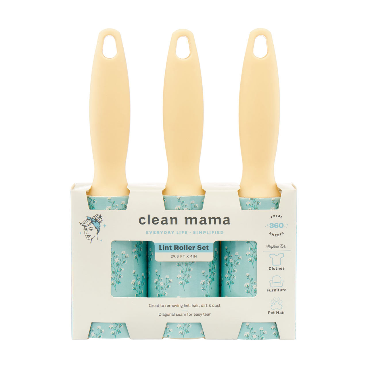 Keep your clothes, furniture, and surfaces impeccably clean with the Clean Mama Lint Roller Set. This 3-count set is designed to tackle lint, hair, dirt, and dust effortlessly, ensuring you always look your best and your home stays spotless.