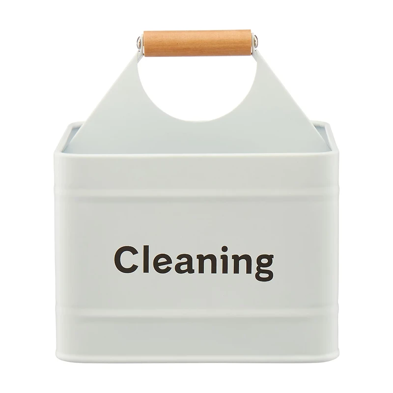 Cleaning Caddy with Wooden Handle, White