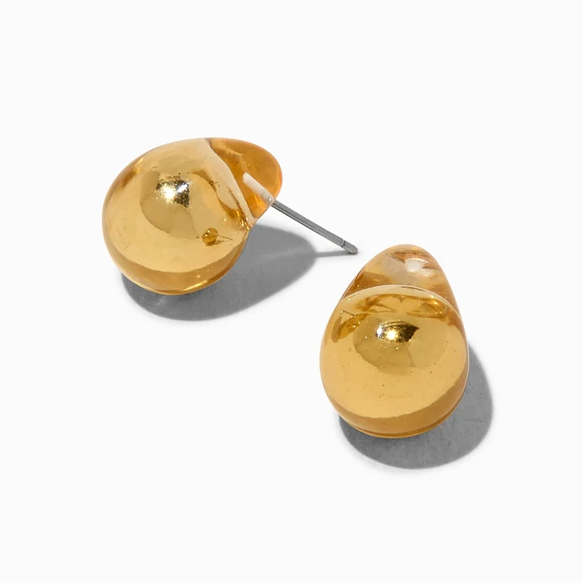 Clear Gold-tone Large Bean 1" Drop Earrings