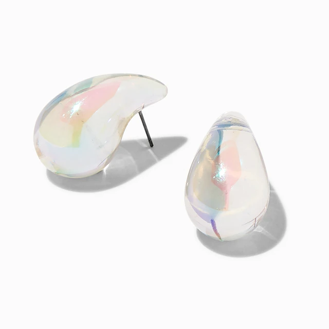 Clear Iridescent AB Large Bean 1" Drop Earrings