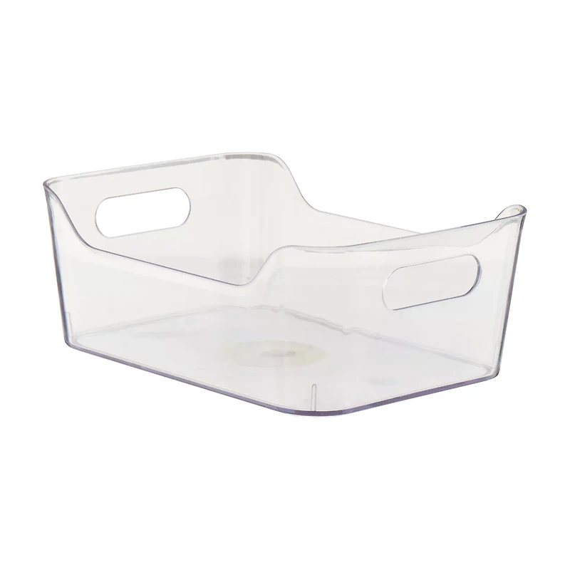 Keep your space organized and clutter-free with our Clear Plastic Storage Bin, Small. This versatile storage solution is perfect for tidying up any room in your home, from the kitchen and bathroom to the office and garage. Measuring compactly, this small storage bin is designed to fit comfortably on shelves, in cabinets, or on countertops. The clear, durable plastic construction allows you to easily see the contents inside, making it simple to find exactly what you need without rummaging through drawers or boxes. The bin features built-in handles on both sides, providing a secure grip for effortless lifting and carrying. Its smooth, rounded edges ensure safe handling, while the sturdy design guarantees long-lasting use. Ideal for storing small items such as pantry goods, toiletries, office supplies, craft materials, and more, this clear plastic storage bin helps you maintain an orderly and efficient space. Its sleek, transparent design blends seamlessly with any decor, making it a practical and stylish addition to your home organization tools.