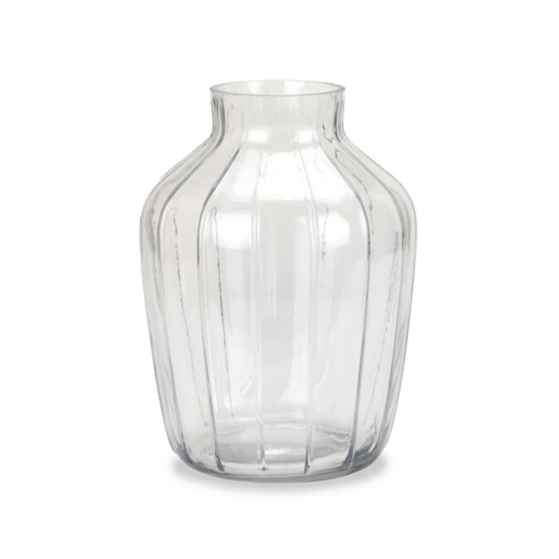 Elevate any surface with the modern elegance of this Clear Ribbed Glass Fluted Vase. Its sleek, transparent finish provides the perfect home for bright florals and greenery! Vase measures 9.45H x 6.69 in. in diameter Crafted of glass Ribbed design Fluted design Clear finish For decorative use only Care: Dust with a soft, dry cloth. Contact your local Kirkland's store for availability. Quantities and selection may vary by location. WARNING: Cancer and Reproductive Harm - For more information go to www.P65Warnings.ca.gov .