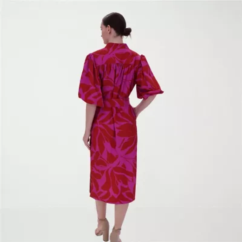 Clover And Sloane Womens Short Sleeve Midi Floral Shift DressClover And Sloane Womens Short Sleeve Midi Floral Shift Dress