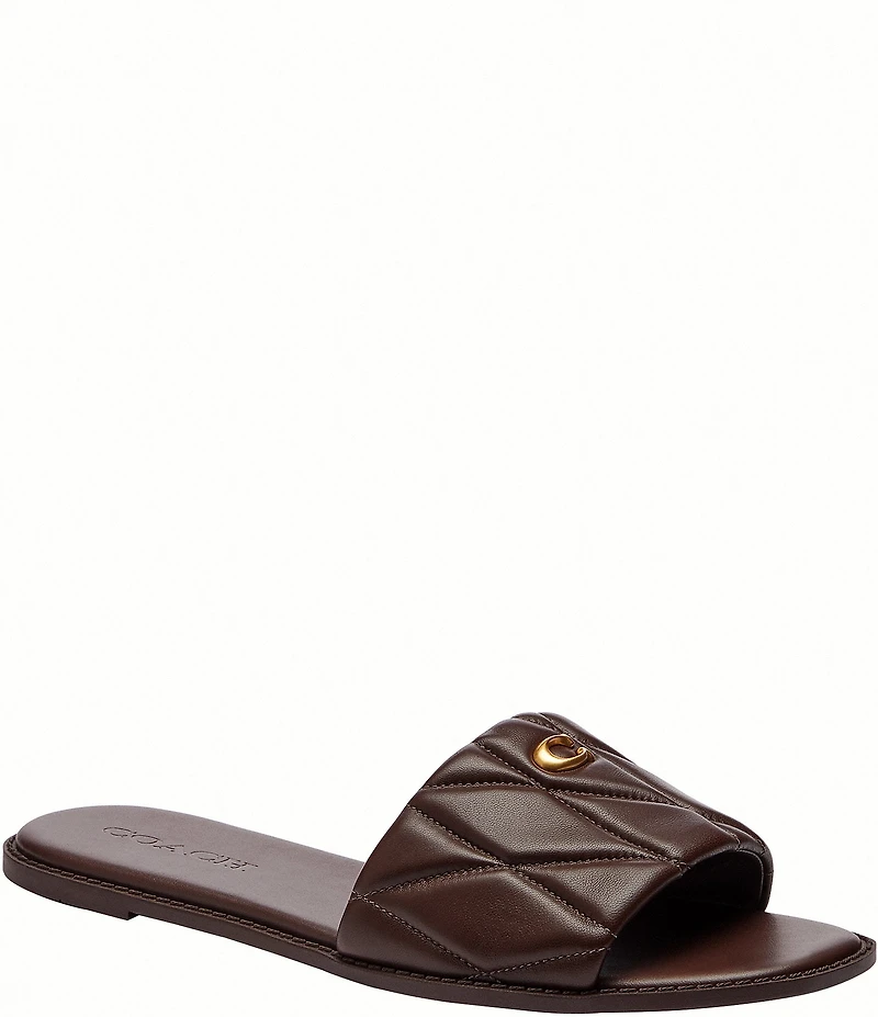 COACH Holly Quilted Leather Oblique Toe Slide Sandals