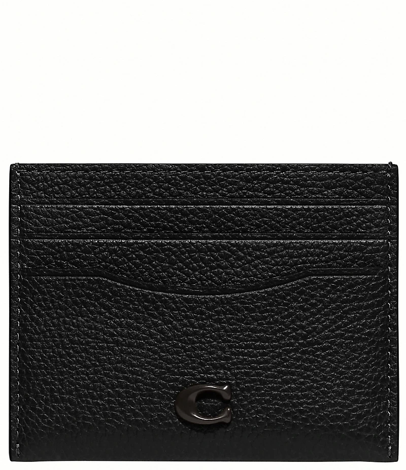 From COACH, this card case features: Soft polished pebble leather Tonal hardware Six credit card slots Approx.: 4" L x 3" H Imported.