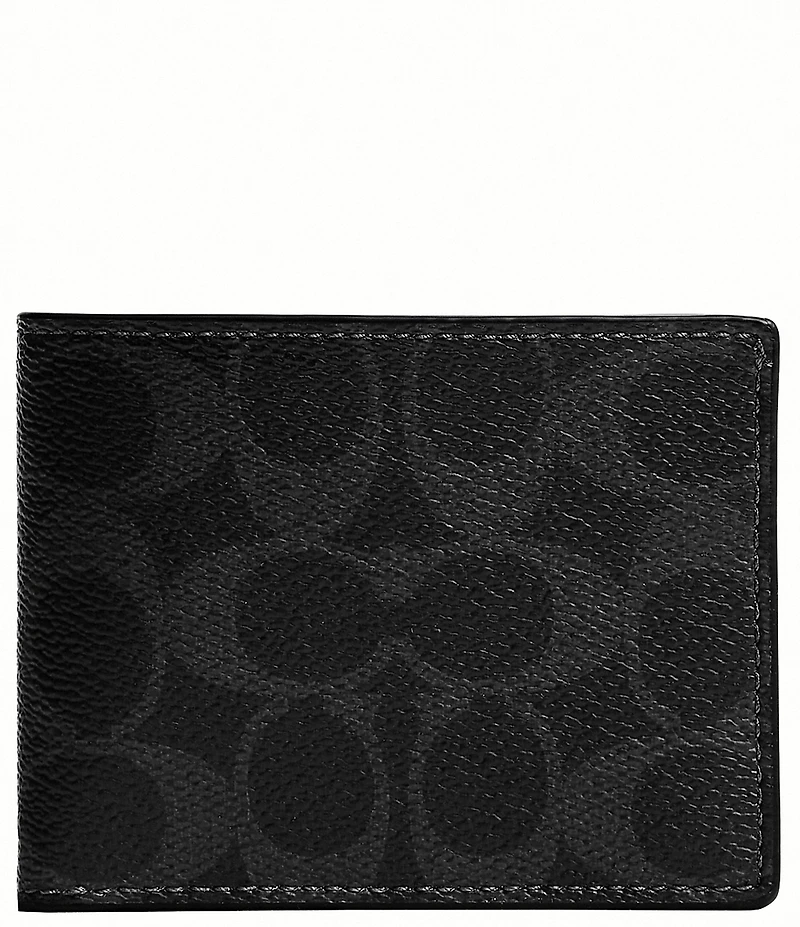 COACH Signature Coated Canvas/Leather Slim Billfold Wallet