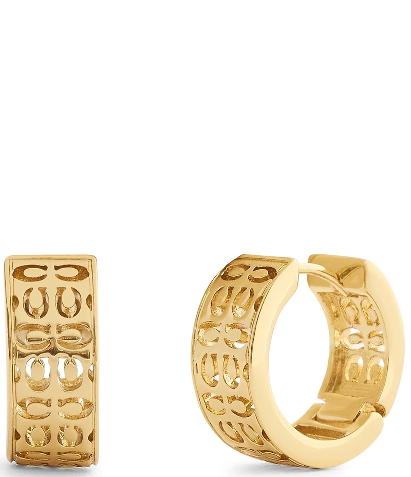 COACH Signature Quilted Cut Out Huggie Hoop Earrings
