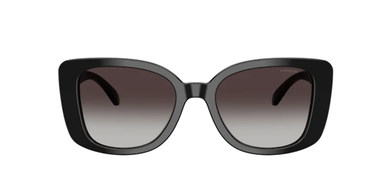 Elevate your style with the coach hc8450u cdp48 sunglasses, featuring bold square frames crafted from durable plastic with a sleek black finish. These acetate temples showcase a subtle signature c pattern, celebrating coach's distinctive design heritage with new york-inspired sophistication. Grey gradient lenses add a modern touch, complementing the timeless saddle bridge for all-day comfort. Perfect for those who crave bold femininity and refined flair.