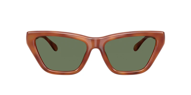 Bold and sophisticated, the coach hc8449u cdp33 sunglasses showcase a striking cat-eye shape with angular edges inspired by the iconic pillow tabby design. Crafted from durable plastic with injected temples for added comfort, they feature a modern tortoise front paired with solid green lenses. Designed with a standard bridge, these coach sunglasses combine style and functionality as sunglasses with a universal fit.