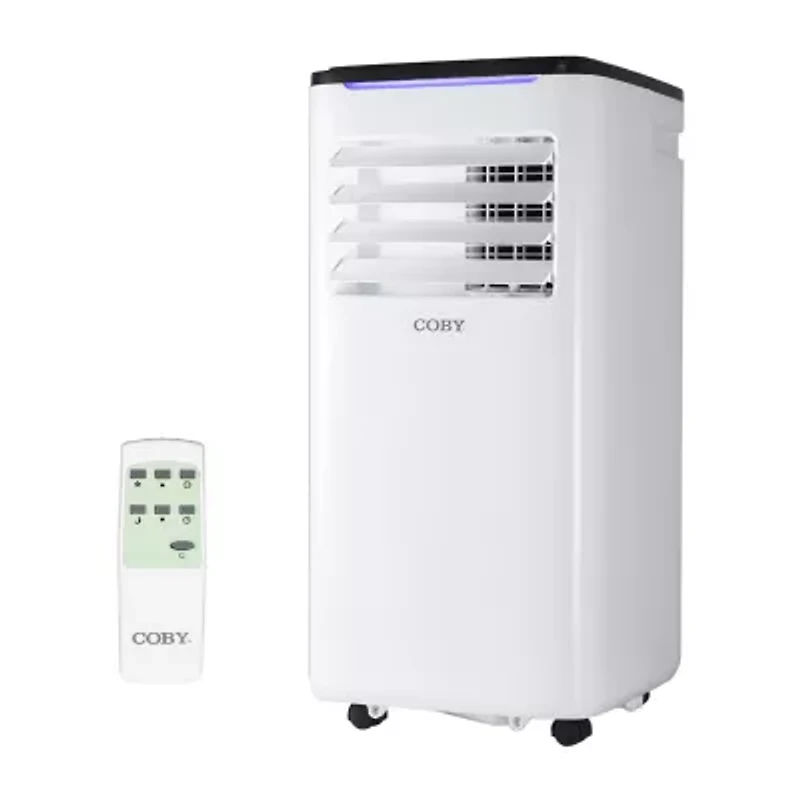 Enjoy this Coby 9,000 BTU (Ashrae 128) 6,100 BTU (SACC/CEC) air conditioner portable during warm weather months so you can stay comfortable and cool. Our air conditioner portable for room (13.9" x 13.3" x 27.5") has 3 functionalities: fan, dehumidifier, and ac, totaling a powerful combo. This personal cooler and air conditioner fan comes with an easy-to-navigate remote control for optimal convenience. Our 9000 BTU air conditioner cools a room up to 400 square feet and is compact and highly mobile thanks to casters on the bottom and handles on the side. Additionally, your new ac unit portable comes with a removable washable filter for hassle-free cleaning. When it comes to ac units for rooms, this personal air conditioner and 9000 BTU portable ac has impressive functionalities, such as a 24-hour timer, auto water evaporation, 2 cooling + 2 fan speeds, and electronic controls with an intuitive led display. Our room air conditioner and fan ac also comes with a complete installation kit and internal mechanical air swing. You can't go wrong with a portable cooler and dehumidifier fan like this one, especially on sweltering summer days when cool air is critical. Our Coby indoor air conditioner takes R-32 refrigerant to optimize energy efficiency and reinforced packaging is included for total customer satisfaction. When it comes to room air conditioners and fans that blow cold air, our Coby indoor ac unit is your top solution.