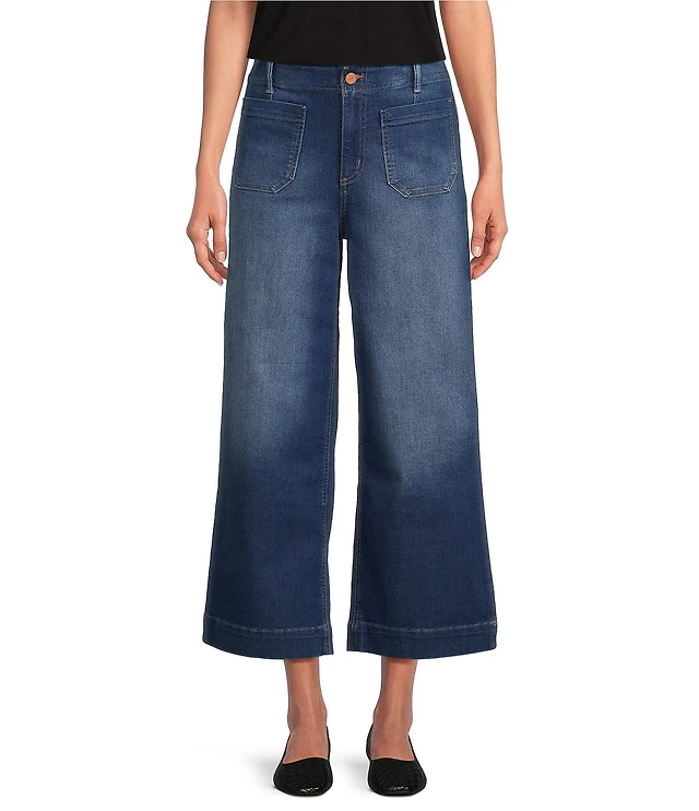 Code Bleu Stretch Denim High Rise Wide Leg Cropped Jeans