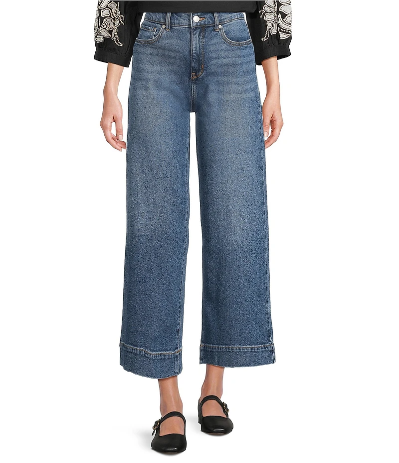 Code Bleu Stretch Denim High Rise Wide Leg Cropped Jeans