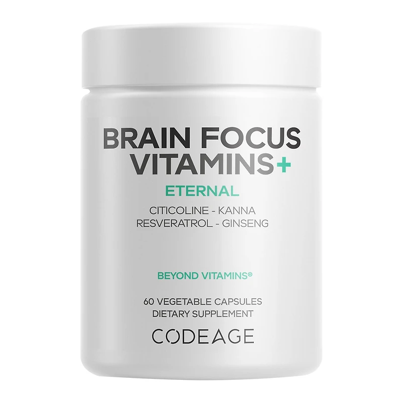 Codeage - brain focus vitamins - 60 vegetable capsules codeage brain focus vitamins features a blend of vitamin b12 methylcobalamin, citicoline as cognizin®, a patented and extensively researched form of citicoline, known for its unique properties. This brain supplement also includes panax ginseng, resveratrol, phosphatidylserine, gotu kola, and kanna in a premium nootropic formula. Codeage brain focus vitamins includes vitamin b12 as methylcobalamin and citicoline as cognizin®, a clinically studied ingredient. This formula contains panax ginseng extract, standardized to 10% ginsenosides, and trans-resveratrol, derived from polygonum cuspidatum, ingredients traditionally used in wellness routines. Phosphatidylserine from sunflower and gotu kola extract are also included, offering a comprehensive approach to this nootropic supplement. Kanna extract adds a unique element known for its traditional use in promoting wellness. Codeage brain focus vitamins is manufactured in the usa with global ingredients in a cgmp-certified facility. This vegan, non-gmo supplement is also free from dairy, soy, and gluten, with a one-month supply per bottle. . Codeage brain focus multivitamin+ vitamin b - 60 vegetable capsules (30 servings)