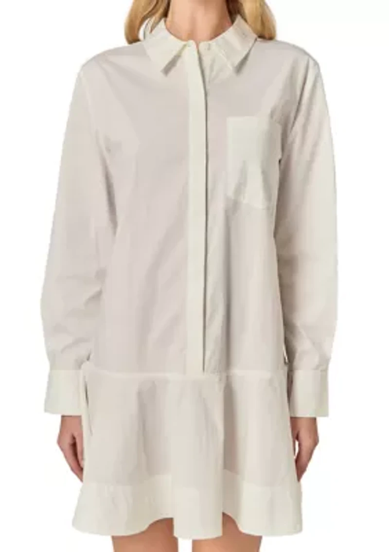 Upgrade your wardrobe with our stunning Collared Flare Skirt Dress. This unique dress combines a classic collared top with a flared skirt bottom, effortlessly creating a flattering silhouette. The soft and flowy fabric provides comfort and movement, perfect for any occasion. With a variety of colors to choose from, this dress is sure to make a statement wherever you go. The contrasting collar detail adds charm and sophistication, making it a versatile piece for both work and play. Button closure Collar Long sleeve China Imported Product Specifications Measurements from size Small: Total length: 33.75", Bust: 40" Material CottonBlend