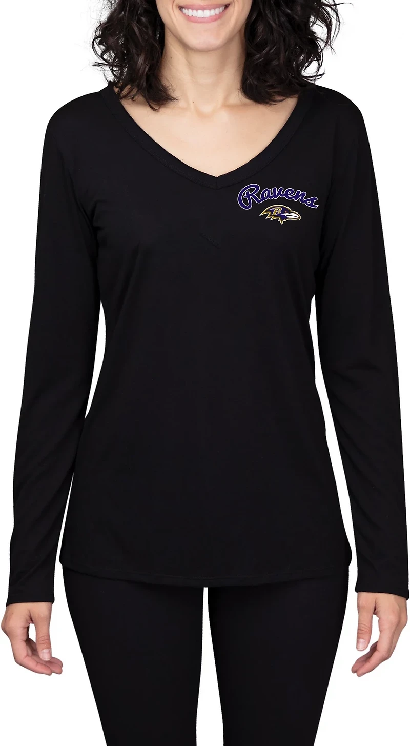Cheer on your favorite team in the College Concept Women's Baltimore Ravens Side Marathon Long Sleeve Top. Crafted with polyester and rayon jersey fabric, this top provides a comfortable feel all day long, while the screen-printed design on the chest shows off your love for the Ravens. Long sleeves. V-neck.