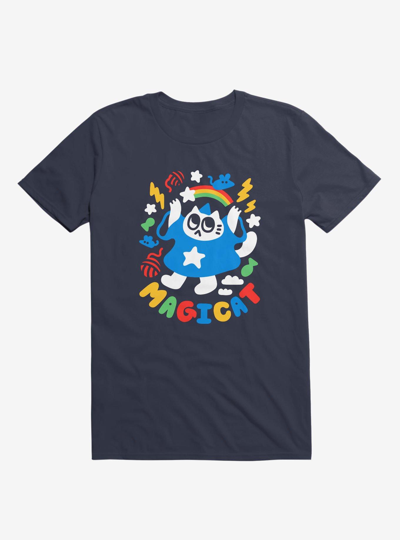 Colorful Magicat Cat Navy Blue T-Shirt