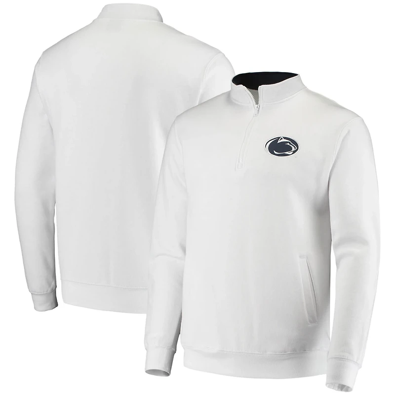 The Men's Colosseum White Penn State Nittany Lions Tortugas Logo Quarter-Zip Jacket is the perfect way to show your support for the Penn State Nittany Lions This midweight jacket is made of a soft cotton and polyester blend featuring an embroidered Tortugas logo on the chest The fleece lining will keep you warm on chilly game days while the rib-knit cuffs and waistband ensure a comfortable fit Whether you're cheering on the Nittany Lions from the stands or just showing your support around town this jacket is a must-have for any Penn State fan