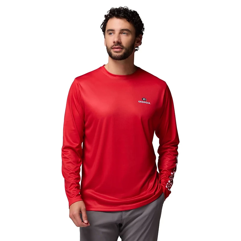 Show your Georgia Bulldogs pride in this PHG Terminal Shot Long Sleeve T-Shirt from Columbia The Omni-Wick technology pulls moisture away from the body keeping you dry and comfortable during any outdoor activity The Omni-Shade technology blocks UVA and UVB rays providing UPF 50 sun protection so you can enjoy the game or your favorite activity while staying protected from the sun