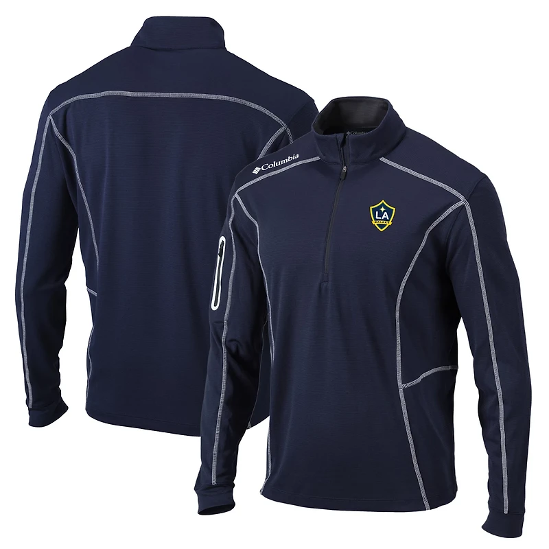 Represent your LA Galaxy pride with this Columbia Navy Shotgun Quarter-Zip Pullover Jacket This lightweight quarter-zip pullover features heat-sealed LA Galaxy graphics and flatlock stitching for a comfortable fit The Omni-Wick technology will keep you dry and comfortable while the seamless zippered sleeve pocket provides a secure place for your essentials Whether you're at Dignity Health Sports Park or watching from home this pullover will keep you comfortable and stylish while you cheer on the LA Galaxy