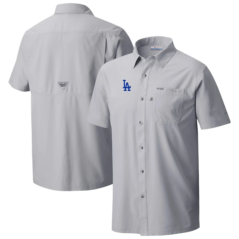 Enjoy breezy comfort while repping your Los Angeles Dodgers with this Columbia Slack Tide Omni-Wick Button-Up Camp Shirt This button-up camp shirt is crafted with Columbia's signature Omni-Wick technology ensuring you stay cool and dry even during the most intense moments of the game Plus the Omni-Shade technology provides UPF 50 sun protection so you can comfortably sport your Los Angeles Dodgers pride all day long