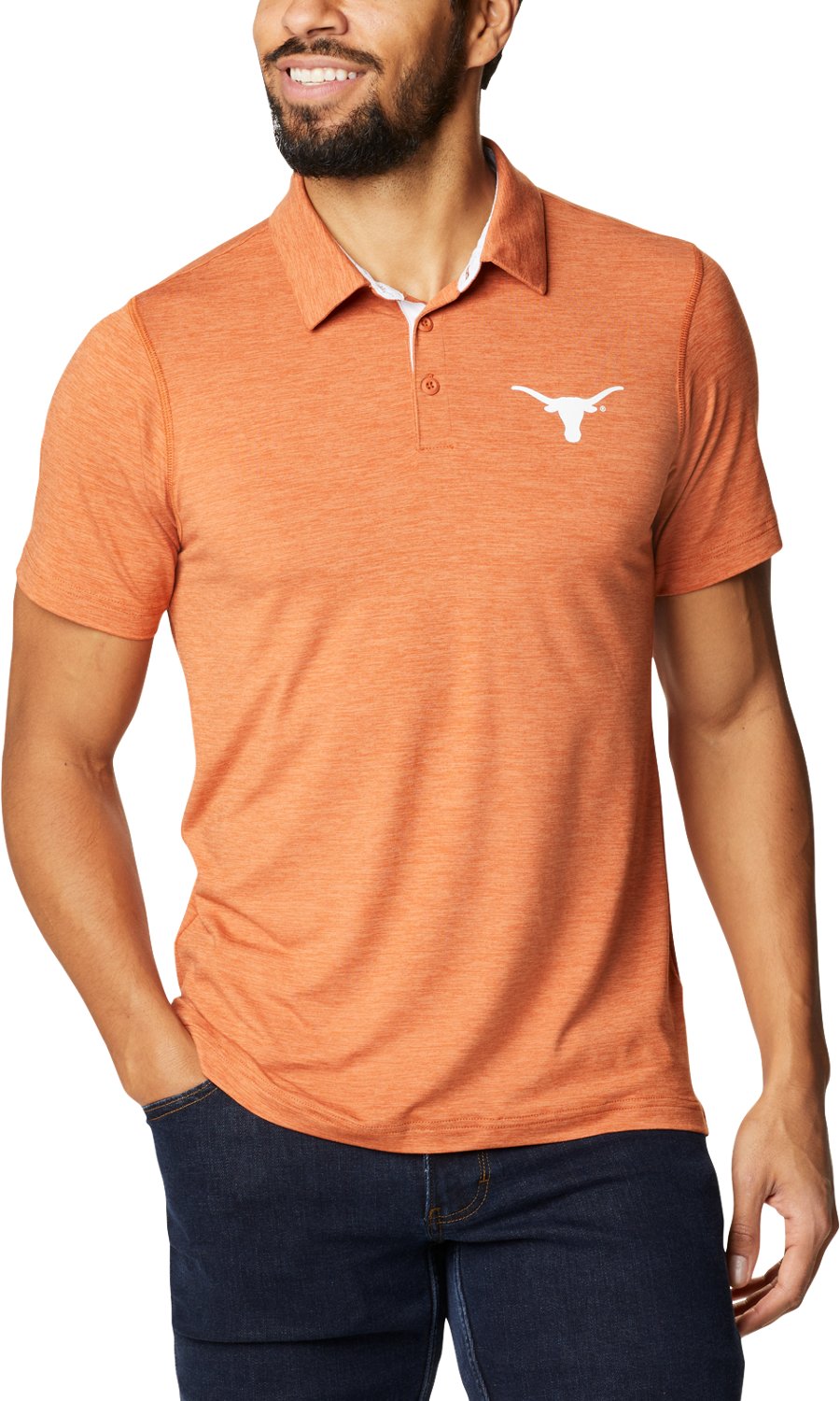 Stay true to your school with the Columbia Men's Collegiate Tech Trail Short-Sleeve University of Texas Polo. Lightweight stretch fabric moves with your body for an unrestrictive fit. The fibers wick away sweat to keep you cool while also providing UPF 50+ sun protection. An embroidered logo shows everybody who you're rooting for.
