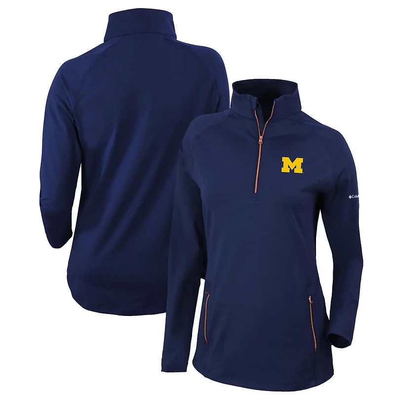 This Outward Nine Quarter-Zip Pullover Top by Columbia lets show off your Michigan Wolverines spirit Its Omni-Wick technology pulls moisture away from the body keeping you comfortable and its rose gold zipper adds a stylish touch Featuring embroidered heat transfer Michigan Wolverines graphics you're sure to be repping your favorite team everywhere you go