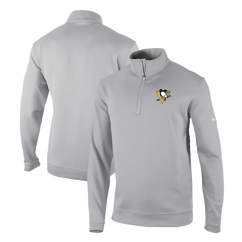 The Men's Columbia Gray Pittsburgh Penguins Omni-Wick Wickhams Hills Half-Zip Pullover Top is the perfect way to show your support for the Pittsburgh Penguins Made of lightweight polyester this top is ideal for mild temperatures and features a grid back to help release heat The heat-sealed vinyl applique and vertical zippered chest pocket add a touch of style while the waffle-knit microfleece lining keeps you warm and comfortable Whether you're cheering on the Penguins at the game or relaxing at home this top is sure to keep you comfortable and stylish