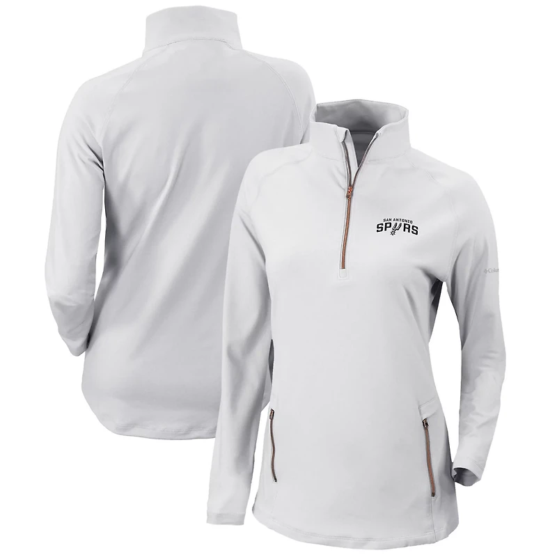 Elevate your gameday style with the Columbia San Antonio Spurs Omni-Wick Outward Nine Quarter-Zip Pullover Top This lightweight pullover is perfect for mild temperatures and the Omni-Shade technology will protect you from the sun's harmful rays The heat-sealed San Antonio Spurs graphics show your team spirit and the contrast color zippers add a stylish touch Whether you're on the court or just out and about this pullover will keep you comfortable and protected from the sun while showing off your Spurs pride