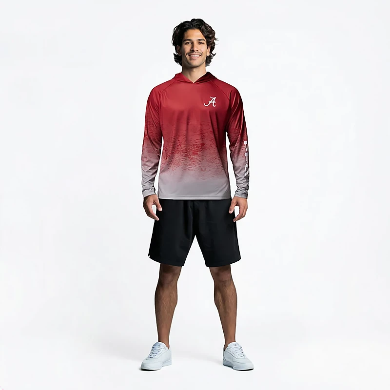 Root for your favorite team when you wear the Columbia Sportswear Men's Alabama Crimson Tide Collegiate PFG Super Terminal Tackle Hoodie. It is made of 100% polyester. The Omni-Shade™ UPF 50 guards against skin damage, blocking UVA/UVB rays, so you stay protected in the sun, and its Omni-Wick™ technology wicks away moisture to to keep you dry. The Alabama Crimson Tide logo shows off your team spirit.