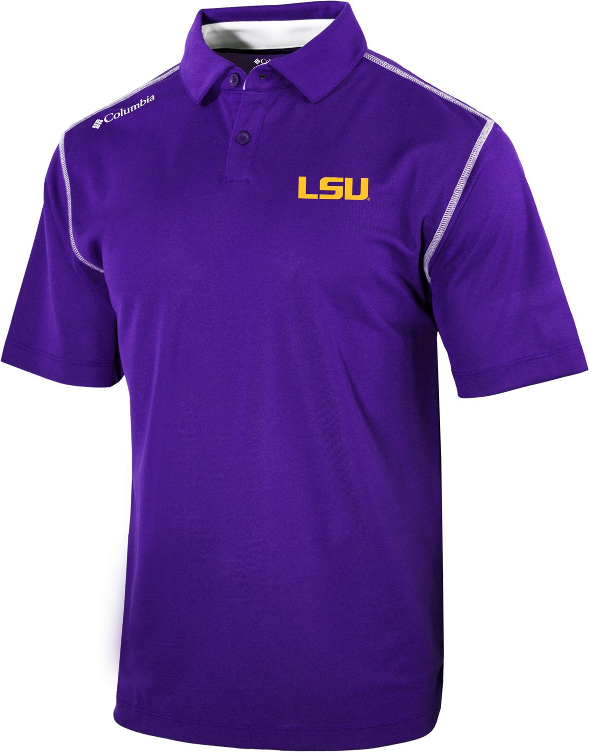 Stay comfortable at the Tigers game in the Columbia Sportswear Men's Louisiana State University Shotgun Polo Shirt. This polo is made from 100% polyester pique fabric for durability and has Omni-SHADE™ UPF technology for protection from harmful sun rays. The Omni-WICK™ moisture wicking technology helps keep you dry, while the LSU team colors show your team spirit.