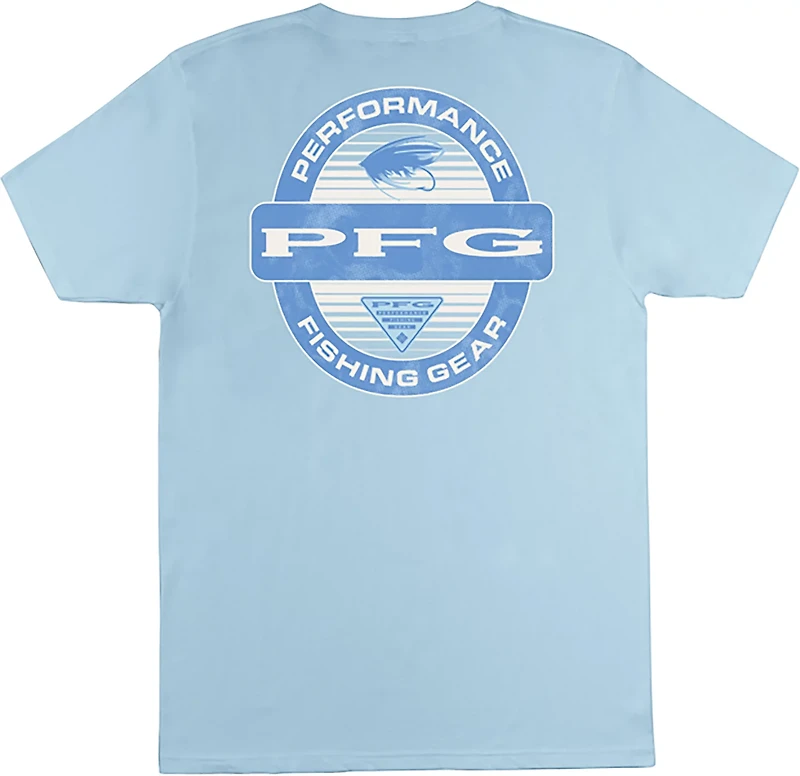 Stay comfortable while fishing in this Columbia Sportswear Men's PFG Yeager T-shirt that features a soft, breathable 100% cotton construction. The PFG graphic on the back and Columbia logo on the front add stylish touches to your outfit.